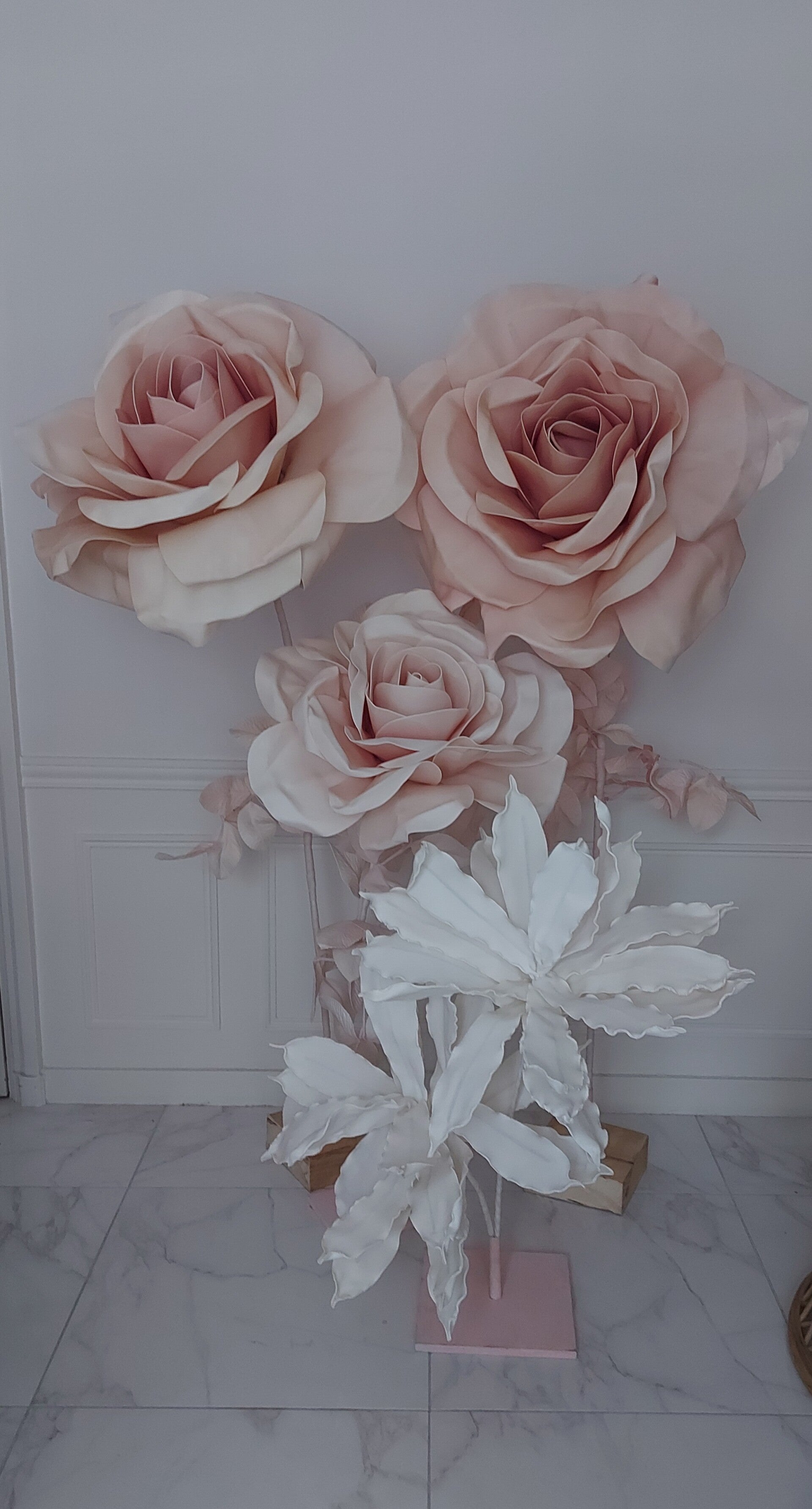 Rose geante rose très claire beige mesure environ 1m50