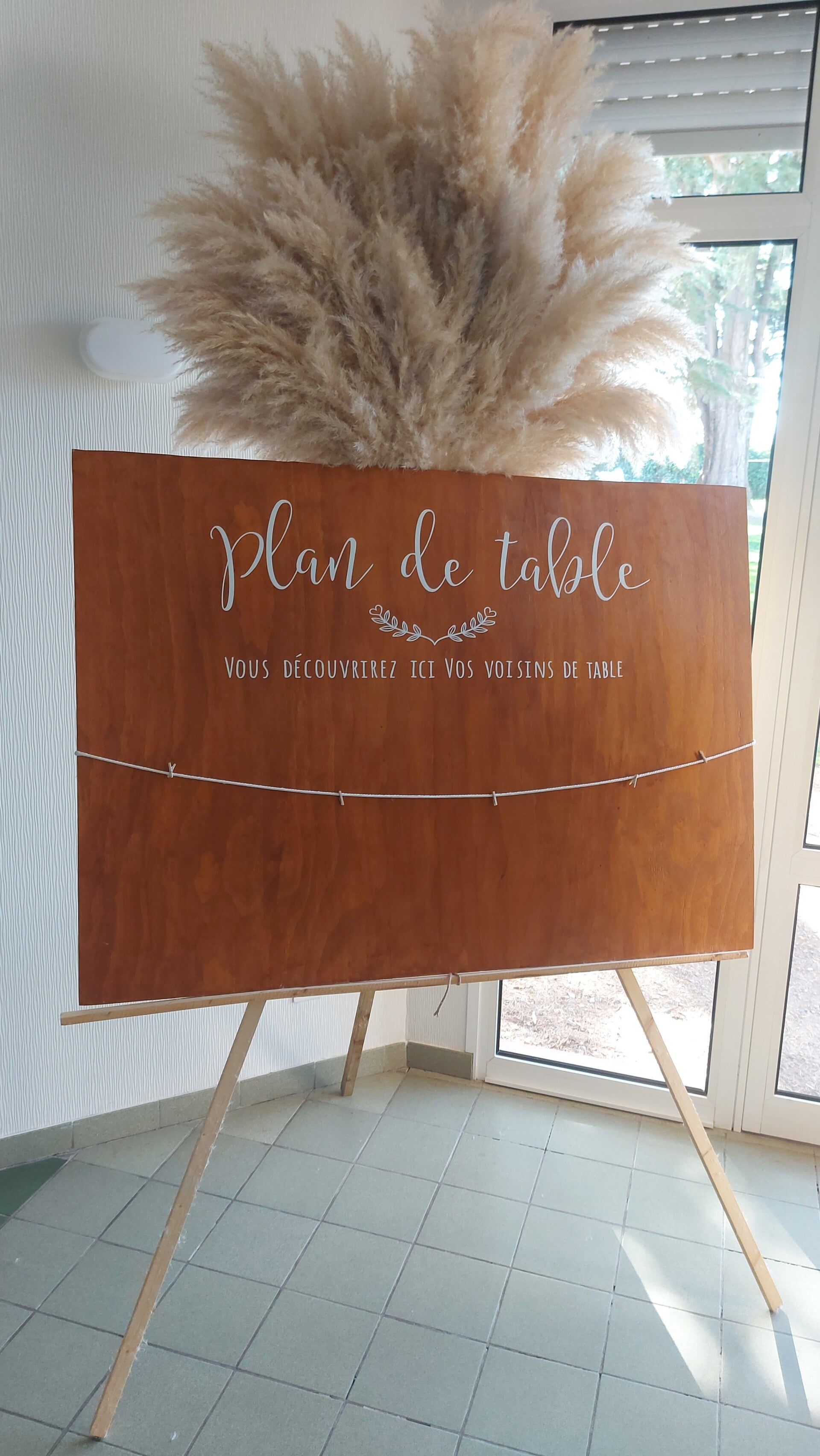 Plan de table sur chevalet et pampas